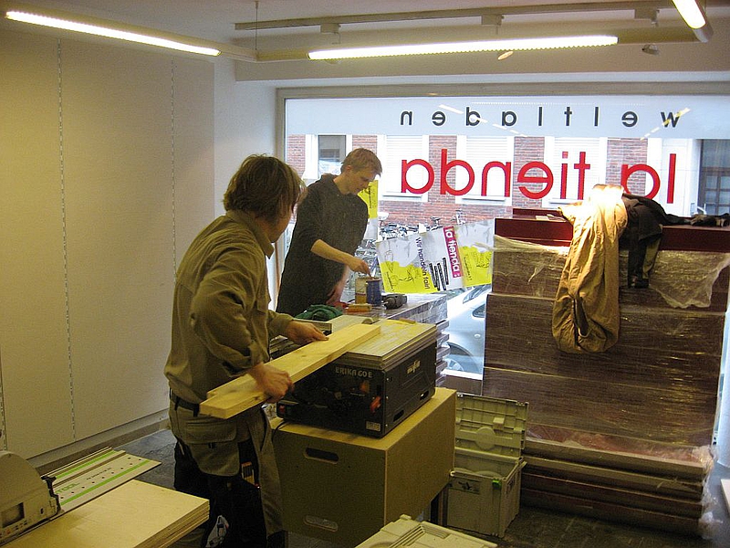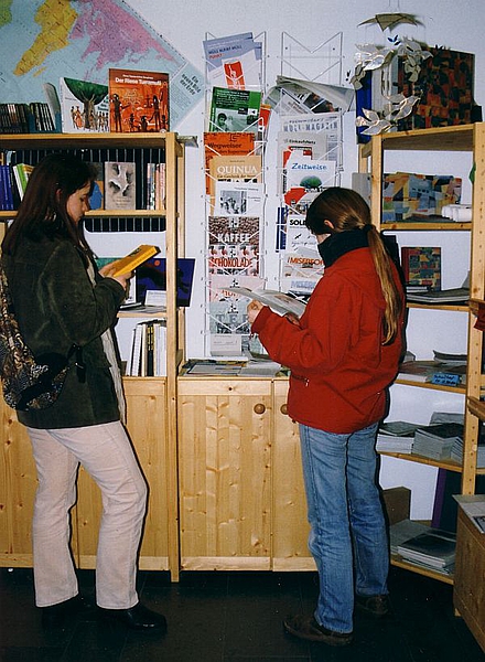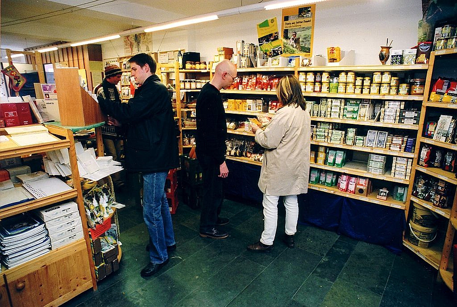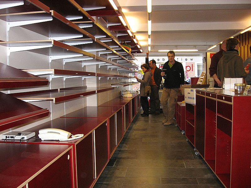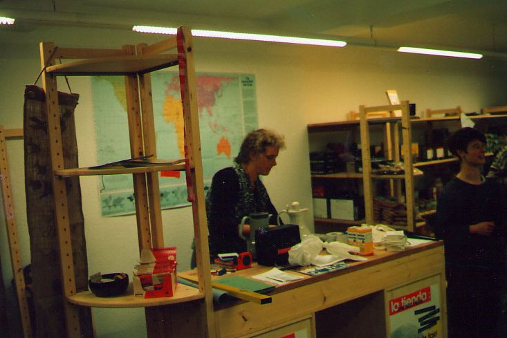 Nach der Renovierung der KSHG konnten wir im Oktober 1995 aus unserem Asyl in der ESG wieder zurück in die Frauenstraße umziehen. Die KSHG überließ nun la tienda die gesamte Fläche des ehemaligen Gruppenraums zur Nutzung als Ladenlokal. Es konnte nun ein Plan entwickelt werden, wie der gesamte Raum mit Regalen und Verkaufsthresen gestaltet werden konnte.
