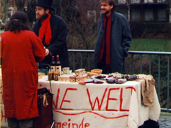 Viele ehemalige Mitarbeiterinnen und Mitarbeiter - damals Studierende - nun in alle Lande verstreut haben sich zum Feiern des Geburtstags von la tienda eingefunden. La tienda Gründer, Sympathanten, la tienda Liebespaare und Familien. Die Zusammenarbeit hat viele Freundschaften entstehen lassen. Impressionen von den Feierlichkeiten im Milagro (Cafe der KSHG an der Frauenstr.)